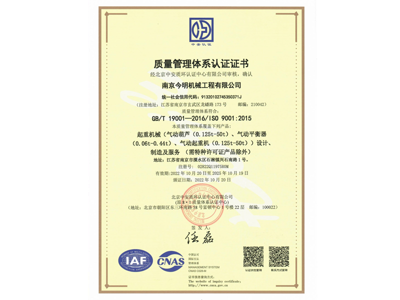 南京今明機械工程有限公司成立于一九九三年,歷經(jīng)二十多年磨練,沉淀了一批跟隨企業(yè)共同成長,技藝超凡、資深的高級工程師、技師、以及熟練的技術工人。企業(yè)的歷練和人才的智慧,鑄造出企業(yè)的核心競爭力。十年磨一劍。本著技術興業(yè),多年來,企業(yè)致力于氣動起重產(chǎn)品的研發(fā)與生產(chǎn)。在國內氣動起重裝備領域具有良好的聲譽。并積極地與國家起重運輸機械質量監(jiān)督檢驗中心、北京起重運輸機械設計研究院、江蘇省科技廳、南航等高校和科研單位緊密合作,與國外知名企業(yè)建立戰(zhàn)略合作伙伴關系,廣泛吸收國內外新技術經(jīng)驗,力求趕超國際先進氣動起重裝備的技術,打造國內氣動起重裝備行業(yè)新軍。目前,企業(yè)已開發(fā)五大系列近百個品種的產(chǎn)品,覆蓋了化工、汽車、機械、冶金、礦山等二十多個行業(yè),并在全國三十多個省份擁有客戶。企業(yè)堅持用心做好每個環(huán)節(jié),精心打造讓客戶滿意的產(chǎn)品,力求...